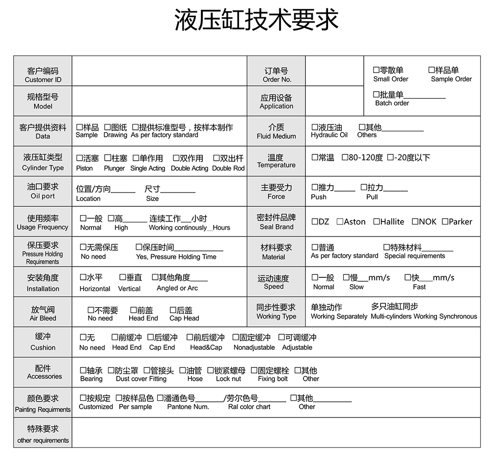3、您填寫《液壓缸技術要求》做最終報價確認。