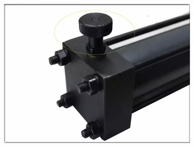 用緊固螺栓把油缸安裝到設(shè)備上,但承重時軸方向,安裝基座上加個阻塊會更好。