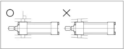 移動中的物品的運動方向必須和活塞桿的運動軸心的方向一致。如果該軸心振動時,會產(chǎn)生襯套早期磨損,甚至缸筒和活塞桿拉缸現(xiàn)象。確認該軸心方向不一致的方法是,在安裝油缸時,必須在活塞桿的出桿位置及進桿位置上測定物品安裝部位的芯的偏離值,在對準芯才將物品與油缸相連接。